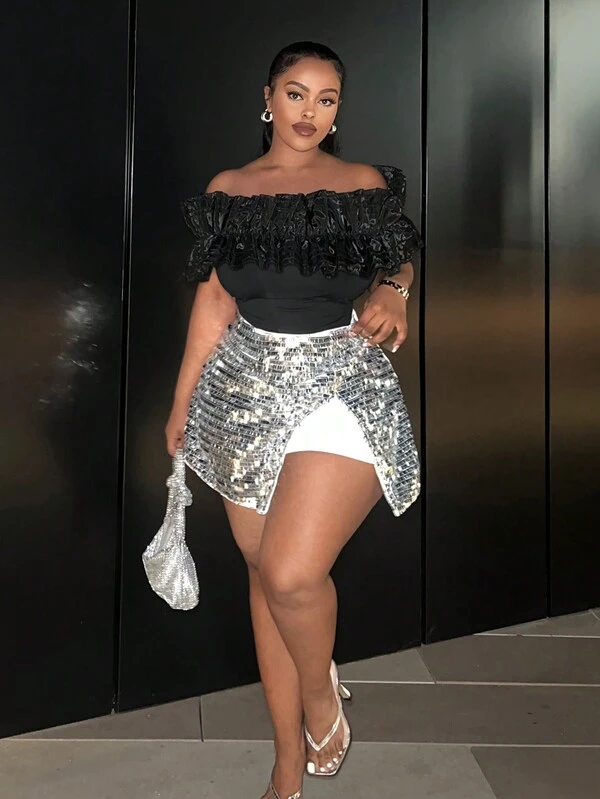 SHEIN Slayr Women's Plus Size Off Shoulder Lace Trim Top