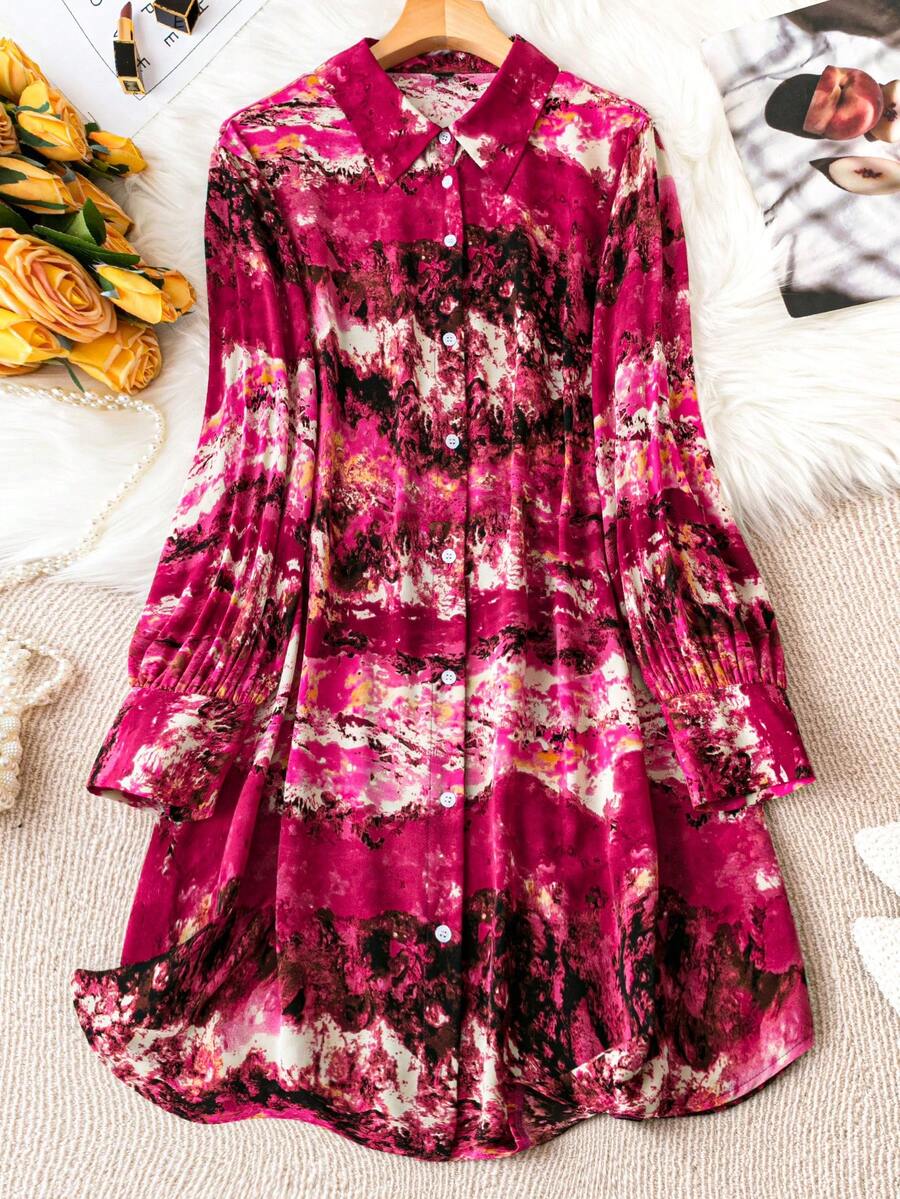 SHEIN LUNE Women's Plus Size Printed Button Front Shirt Dress