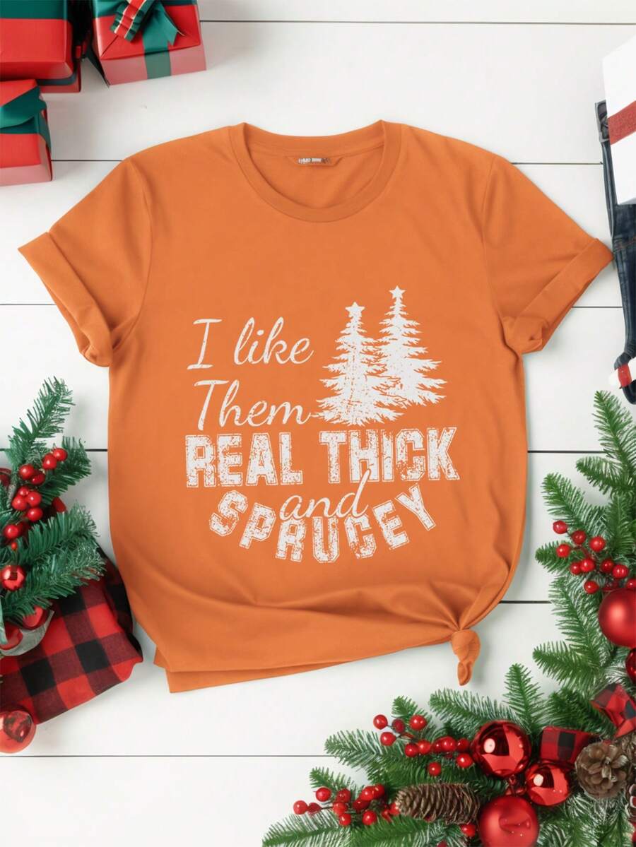 SHEIN Essnce Women's Plus Size Slogan Printed T-shirt