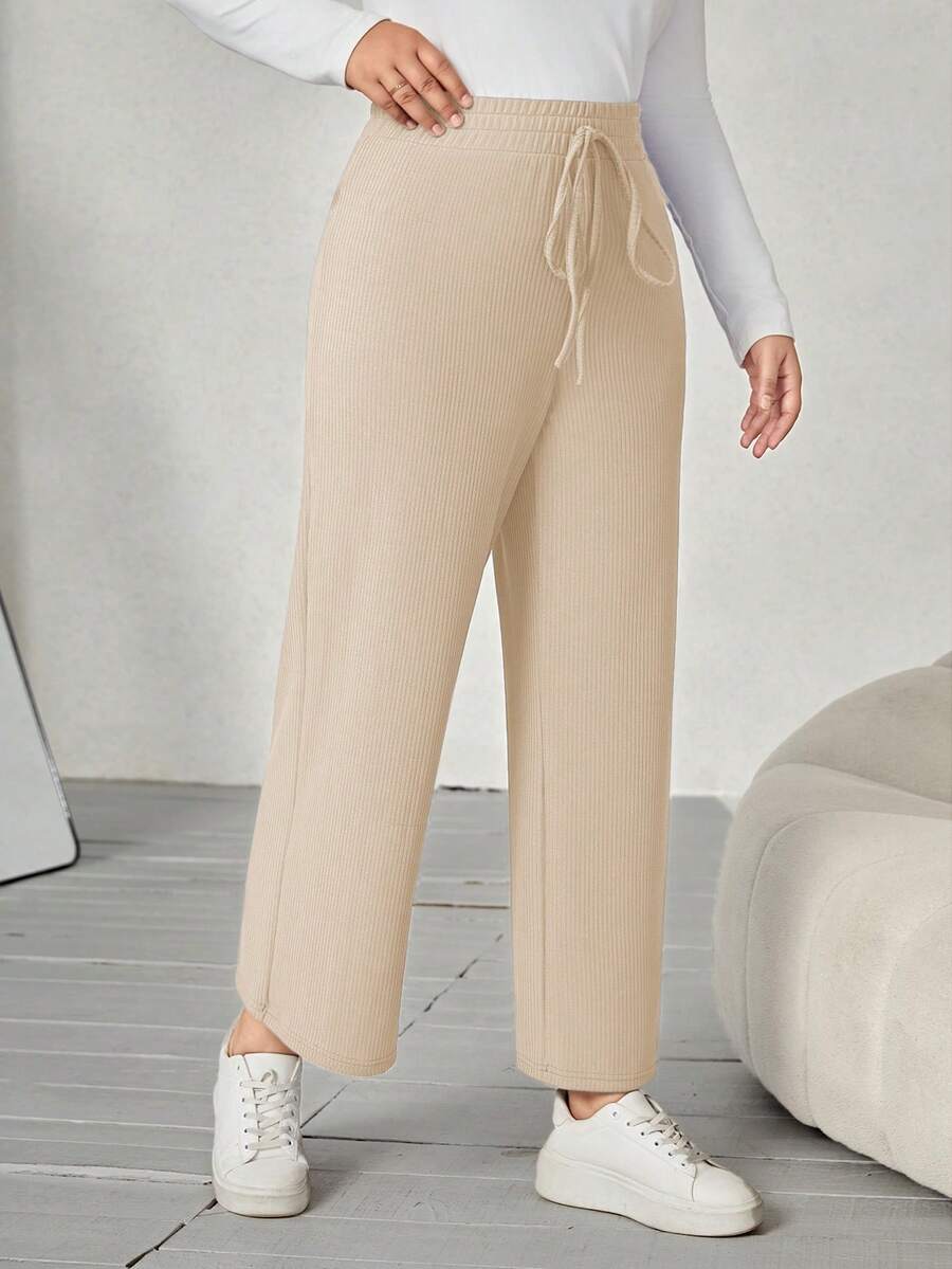 SHEIN LUNE Women's Plus Size Wide Leg Pants With Knot Waistband