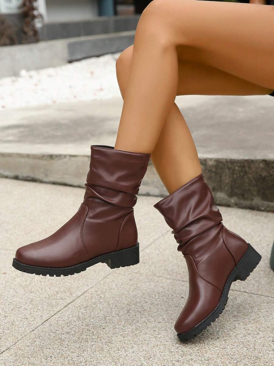 Women's Pu Leather Tapered Mid-calf Boots, Autumn/winter New Style