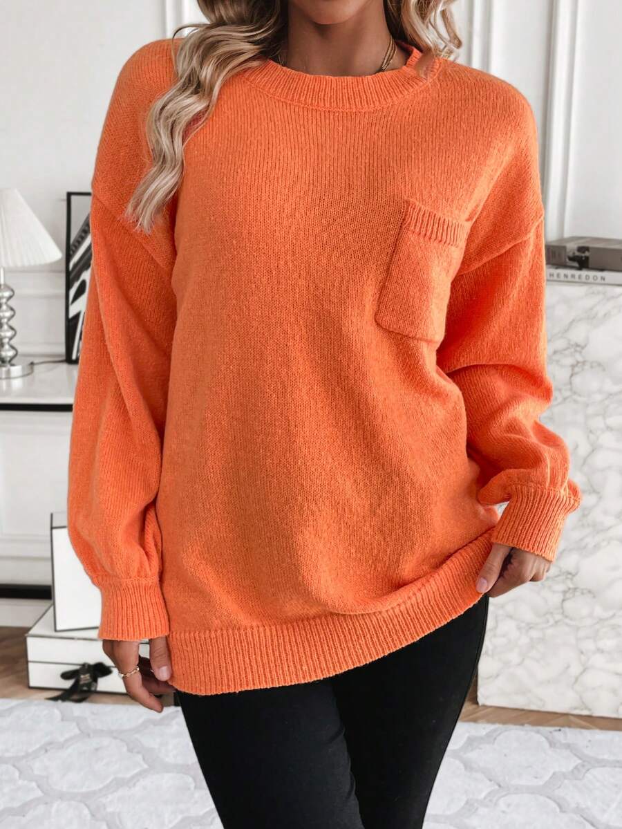 SHEIN LUNE Women's Round Neck Drop Shoulder Sweater