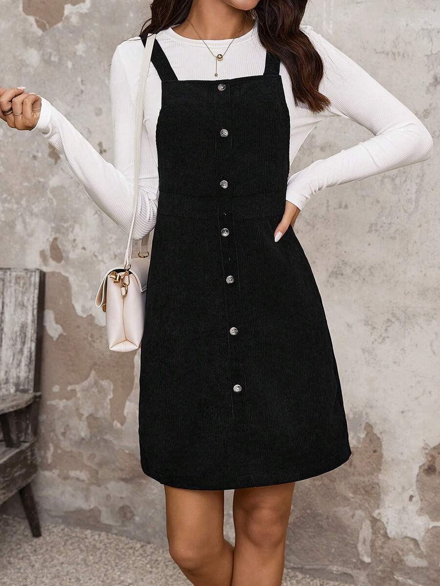 SHEIN LUNE Women's Round Neck Long Sleeve T-shirt And Suspender Dress Set