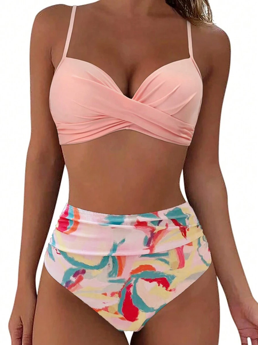 Women's Sexy Push-up Three-piece Bikini Swimsuit Set With Separated Top And Bottom