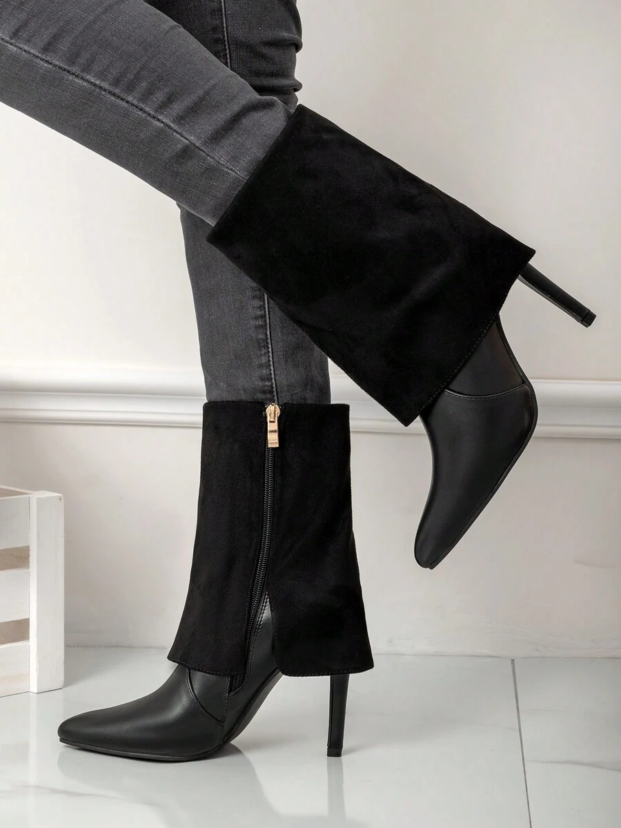 Women's Side Zipper Solid Color Pointed Toe 9cm Anti-skid Ankle Boots, 2023 New Autumn & Winter Pu Leather Black Versatile High Heel Elegant Fashionable Ladies' Boots
