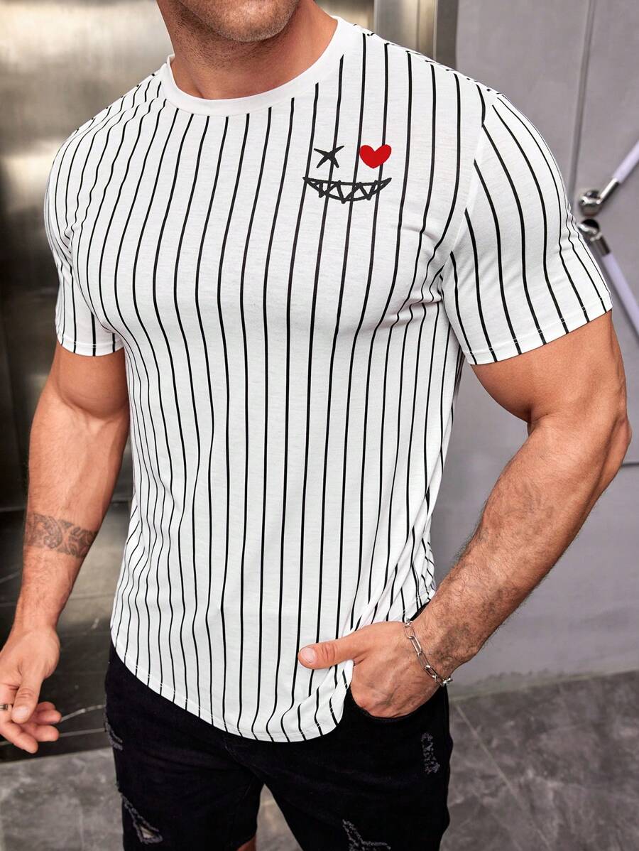 Manfinity LEGND Women's Simple Vertical Striped Round Neck Short Sleeve T-shirt In Black And White