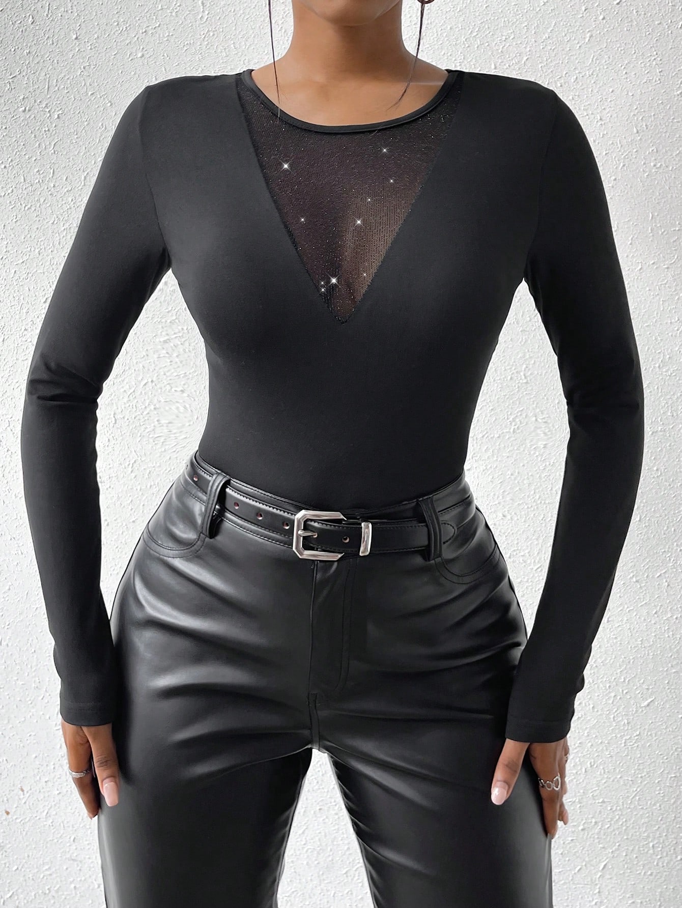 SHEIN Slayr Women's Slim Fit T-shirt With Shiny Mesh Splice