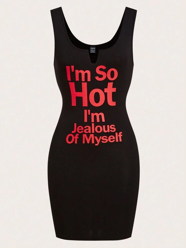 SHEIN Coolane Women's Slogan Printed Spaghetti Strap Dress