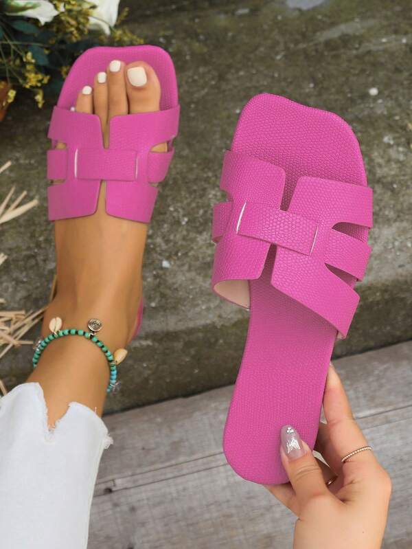 Women's Snake Print Hollow Out Slippers, Flat Sandals