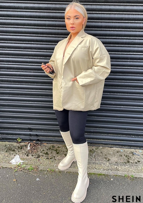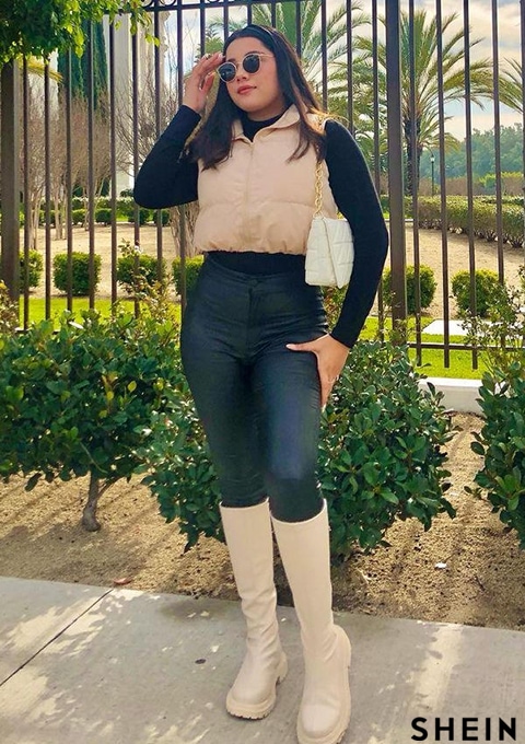 Women's Soft Matte Platform Wedge Heel Over The Knee Boots With Rounded Toe, Rear Zip, Autumn-winter, Beige Leather Surface Comfortable Basic Elegant Shoes