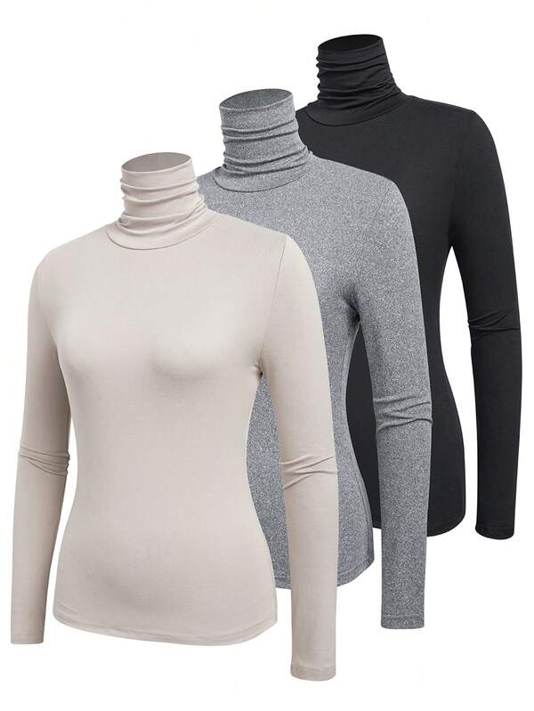 SHEIN Essnce Women's Solid Color High Neck Slim Fit T-shirt