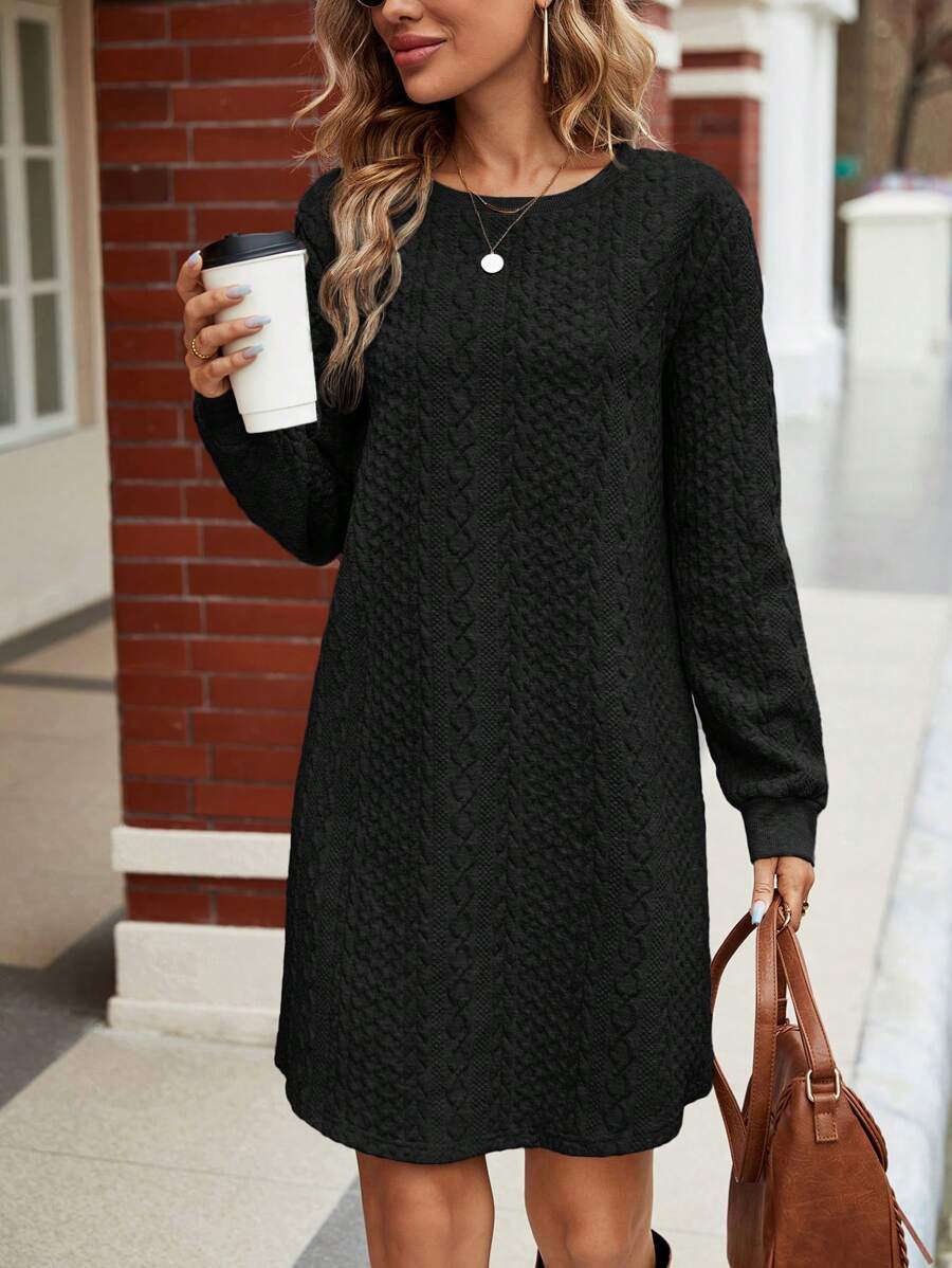SHEIN LUNE Women's Solid Color Knitted Jacquard Long Sleeve Dress