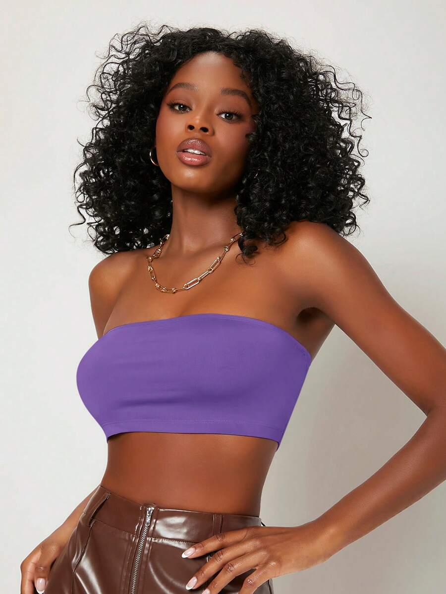 SHEIN BASICS Women's Solid Color Tube Top Cropped Top