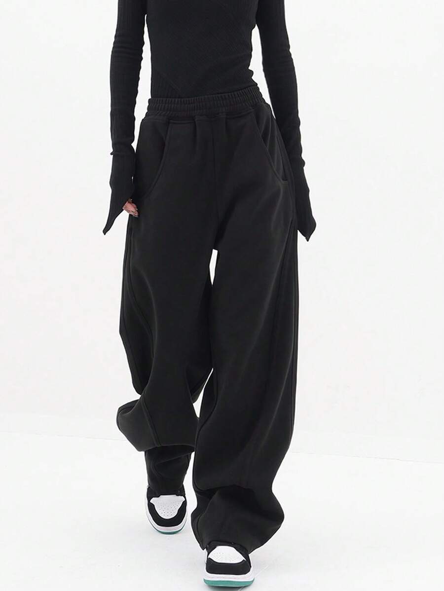 SHEIN Coolane Women's Solid Color Wide Leg Yoga Pants With Elastic Waistband