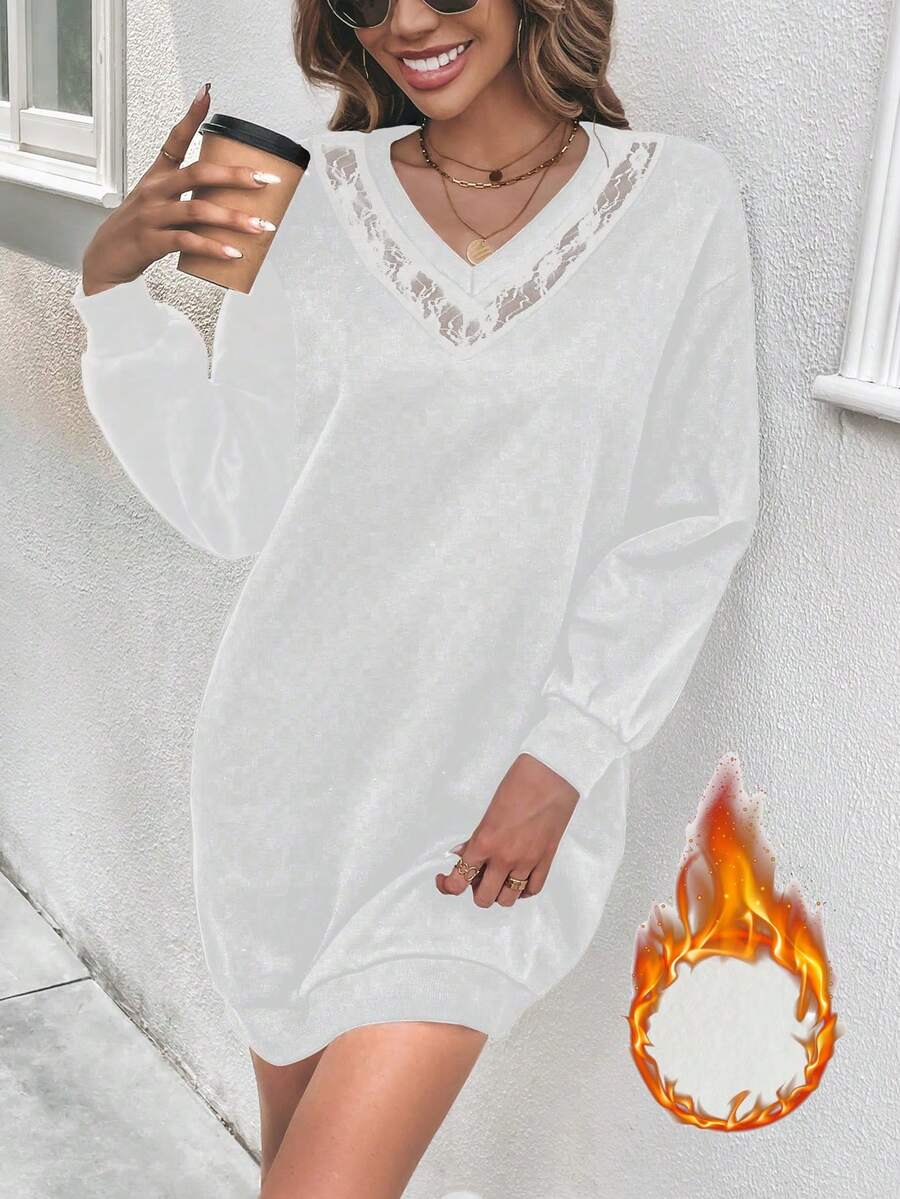 SHEIN Frenchy Women's Spliced Lace Fleece Sweatshirt