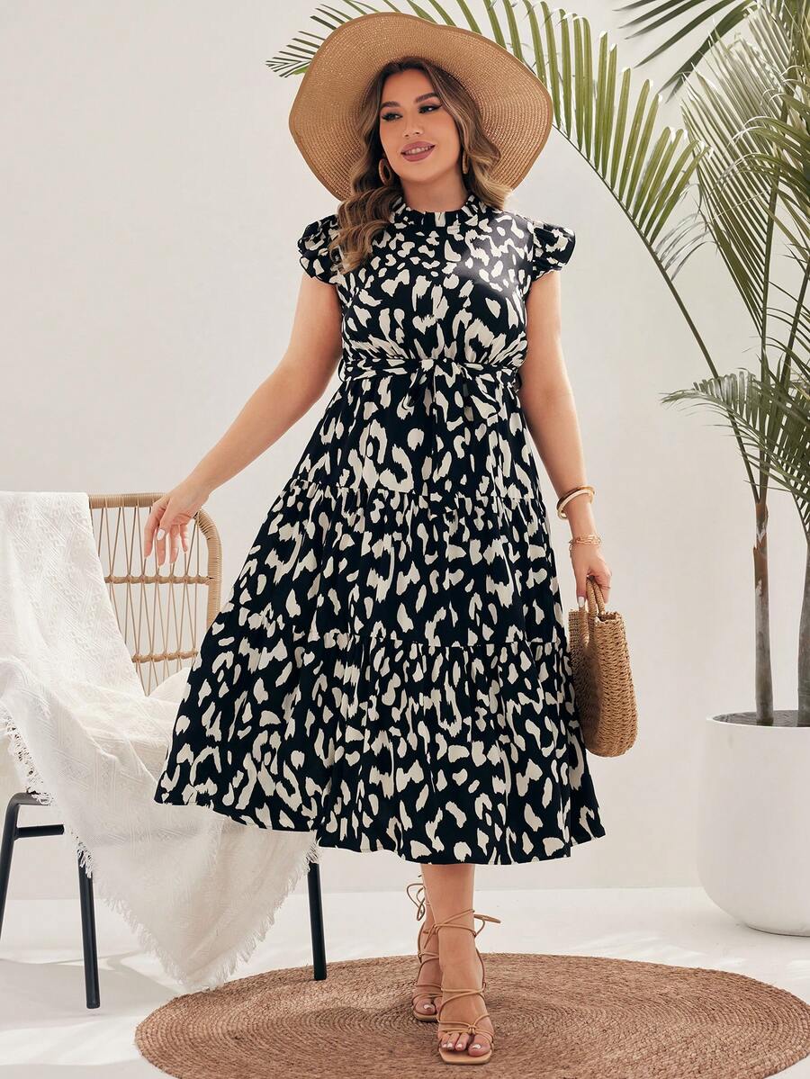 SHEIN VCAY Women's Stand Collar Black & White Plus Size Dress