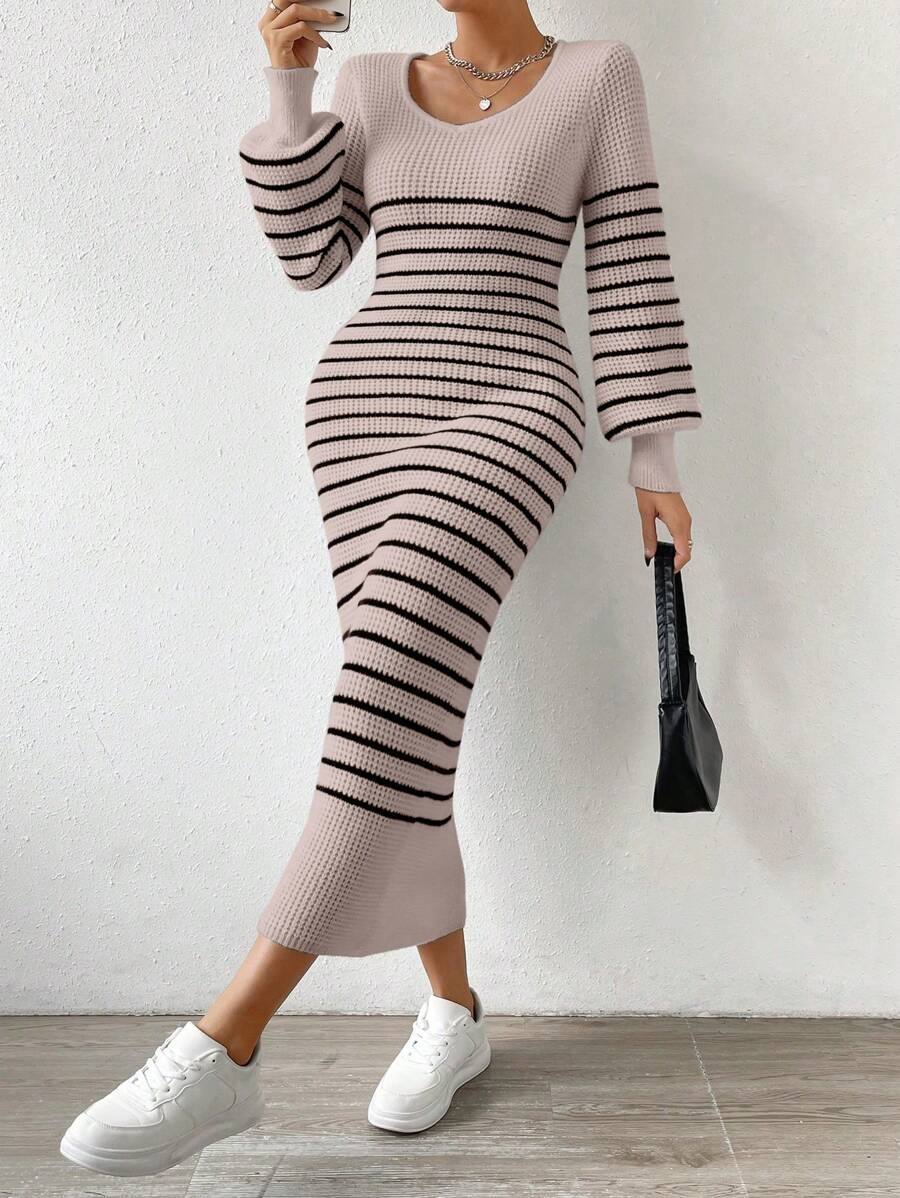 SHEIN Essnce Women's Striped Lantern Sleeve Long Sweater Dress