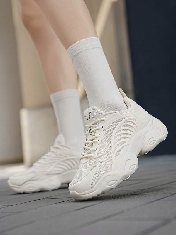 Women's Thick-soled Height Increasing White Sports Shoes With Anti-slip & Shock-absorbing Features, Suitable For Casual And Basketball