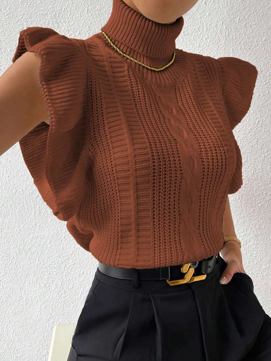 SHEIN Frenchy Women's Turtleneck Ruffle Hem Sleeveless Sweater Vest