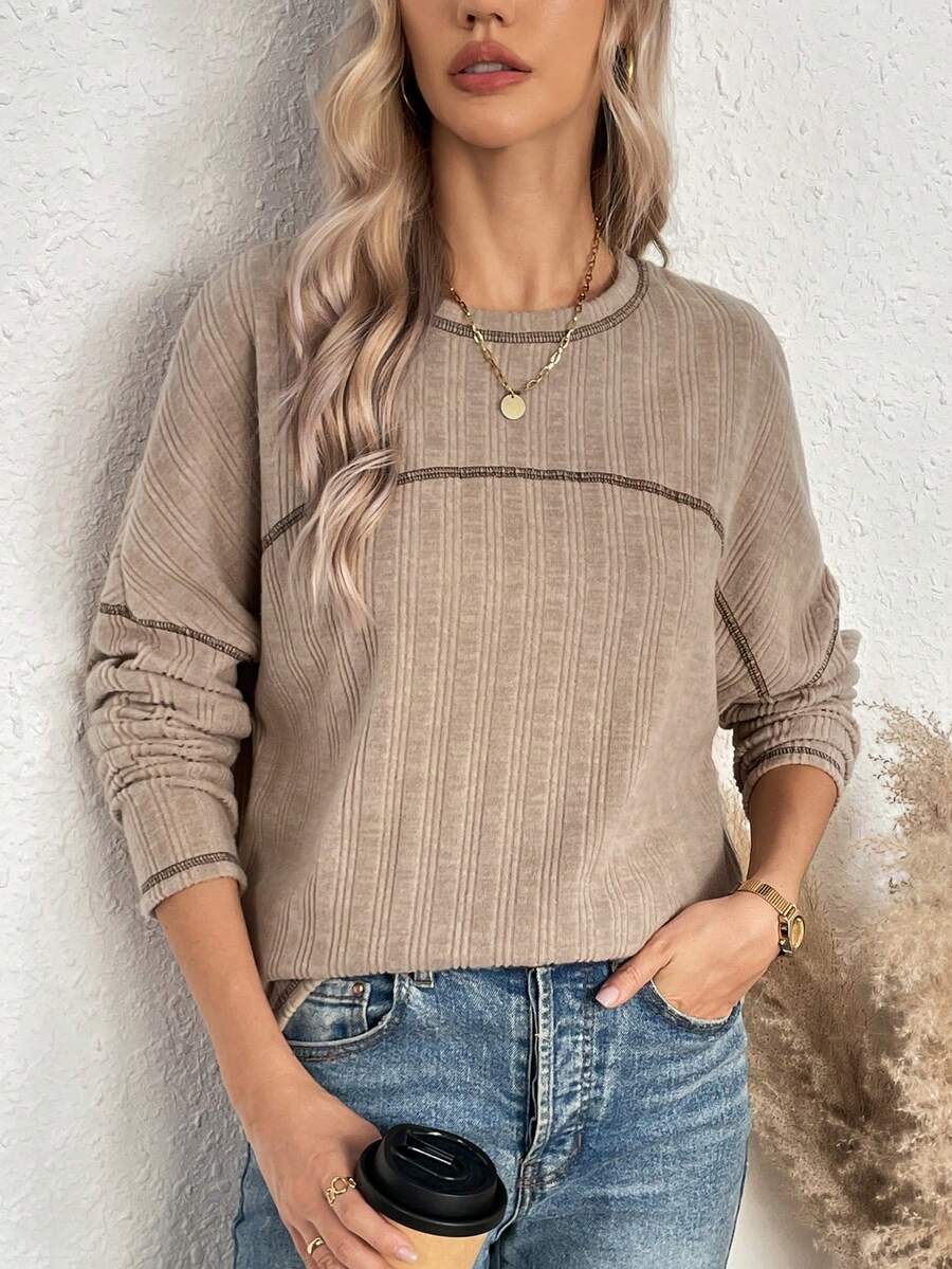 SHEIN LUNE Women's Two-tone Stitching Edge T-shirt