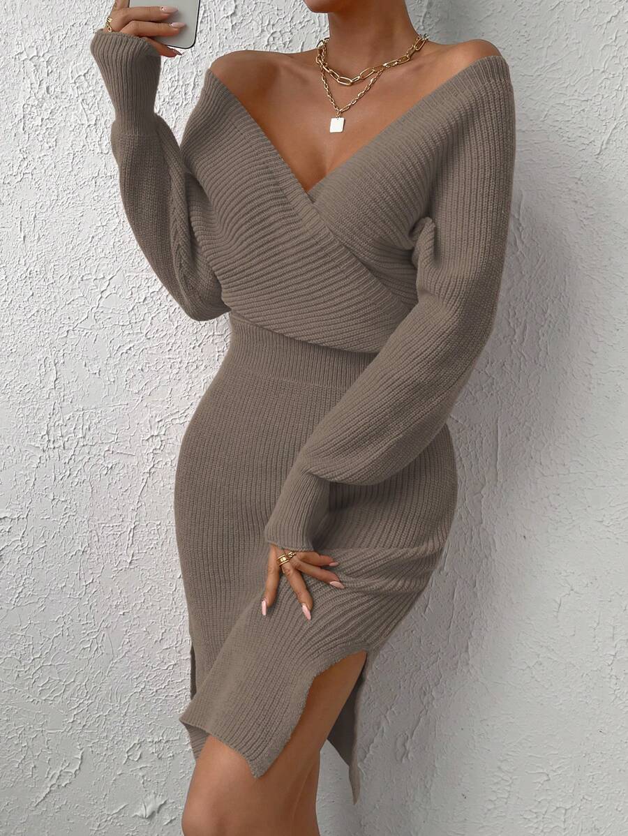 SHEIN Privé Women's Wrap-front Bodycon Sweater Dress