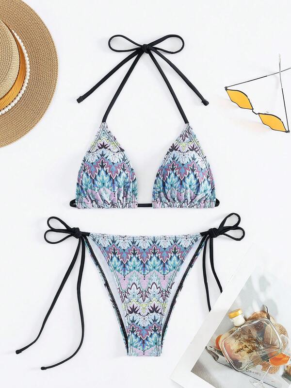 Sexy Halter Neck Tie Three-Piece Bikini Set