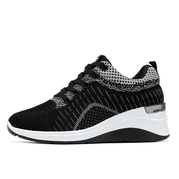 Women Breathable Lace-up Front Wedge Sneakers, Sporty Outdoor Sneakers