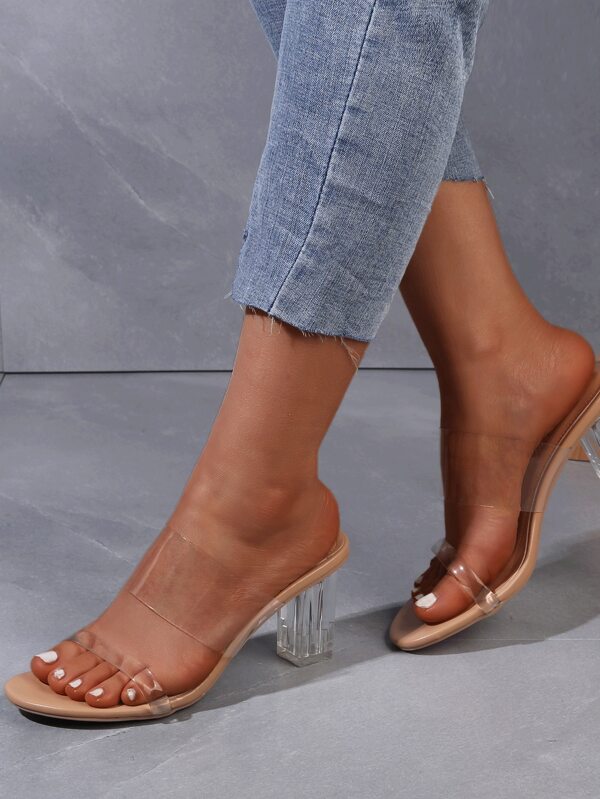 Women Clear Solid Chunky Heeled Mule Sandals, Fashion Summer Heeled Sandals