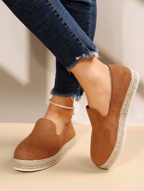 Women Espadrille Flat Shoes, Faux Suede Slip-On Vacation Flat Loafers Brown