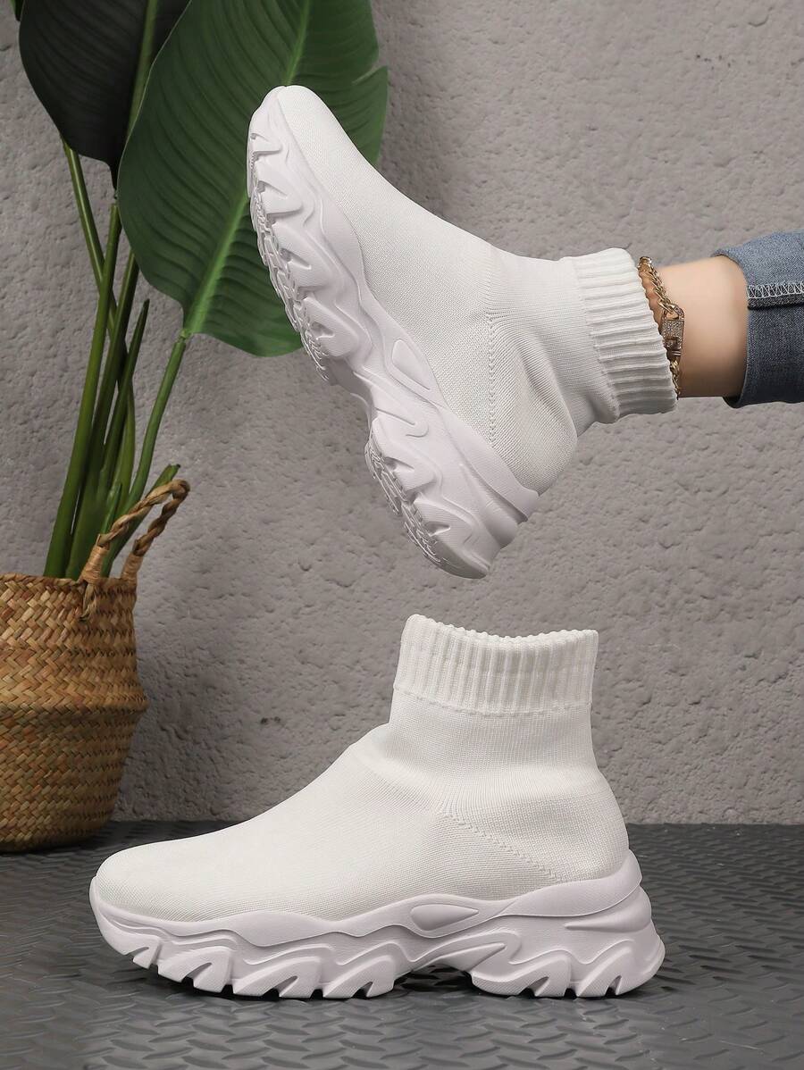 Women High Top Slip On Sports Shoes, Sporty White Sock Sneakers For Outdoor