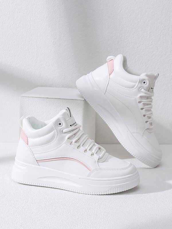 Women High Top White Shoes Ladies Flat Sneakers Comfortable Casual Sport Shoes Can Be Paired With Any Outfit