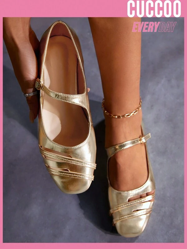 Cuccoo Everyday Collection Women Metallic Cut Out Design Flats, Glamorous Outdoor Mary Jane Flats