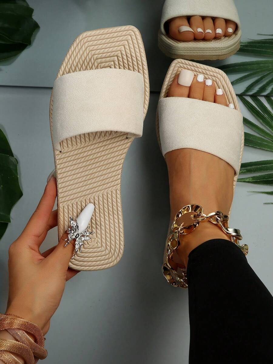 Women Minimalist Single Band Slide Sandals, Vacation Sandals