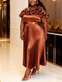 Plus Size Women Rose Jacquard Puff Sleeve A-Line Graduation Dress, Suitable For Commuting, Elegant Cocktail Party, Semi-Formal Dance, Birthday, Wedding Guest, Graduation Ceremony, Gala, Homecoming, Party And Other Occasions, For Valentine's Day