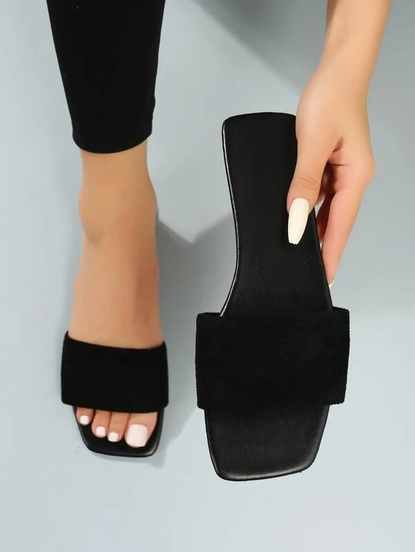 Women Single Band Open Toe Slide Sandals, Elegant Solid Outdoor Faux Suede Flat Sandals