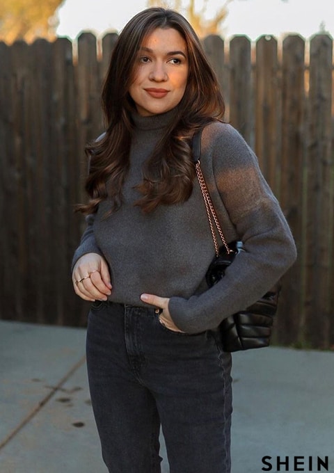 Knit Mix Women Solid High Neck Drop Shoulder Sweater