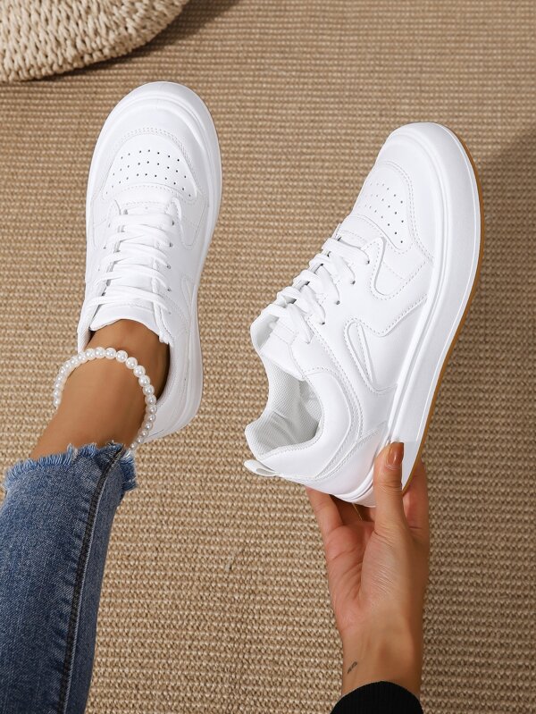 Women White Sneakers Lace-Up Front Skate Shoes