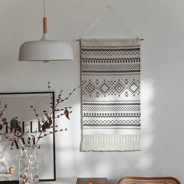Woven Wall Toll -Up Blanket -Posmian'S Unique Bohemian Black And White Geometric Art Decoration -Beautiful Apartment Dormitory Room Decoration; Hand -Woven Streaming Tapestry Decoration Hanging Cloth Simple Studio Bedroom Bedroom Living Room Backg