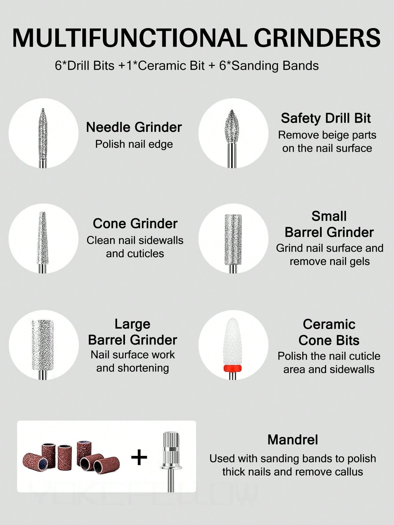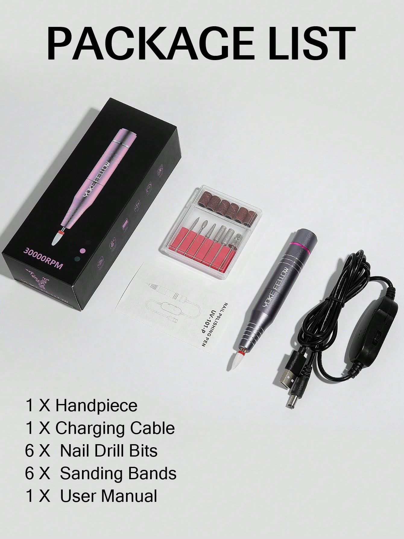YOKEFELLOW USB Electric Nail Drill Machine Kit Pink Black Grey Manicure Machine With 6 PCS Nail Drill Bit & 6 PCS Sanding Bands Electric Professional Nail File, USB Nail Drill Handpiece, USB Nail Drill Pen, Portable Nails Appliance Manicure Tool For Acrylic Nail Salon, For A Perfect NEW YEAR Gift