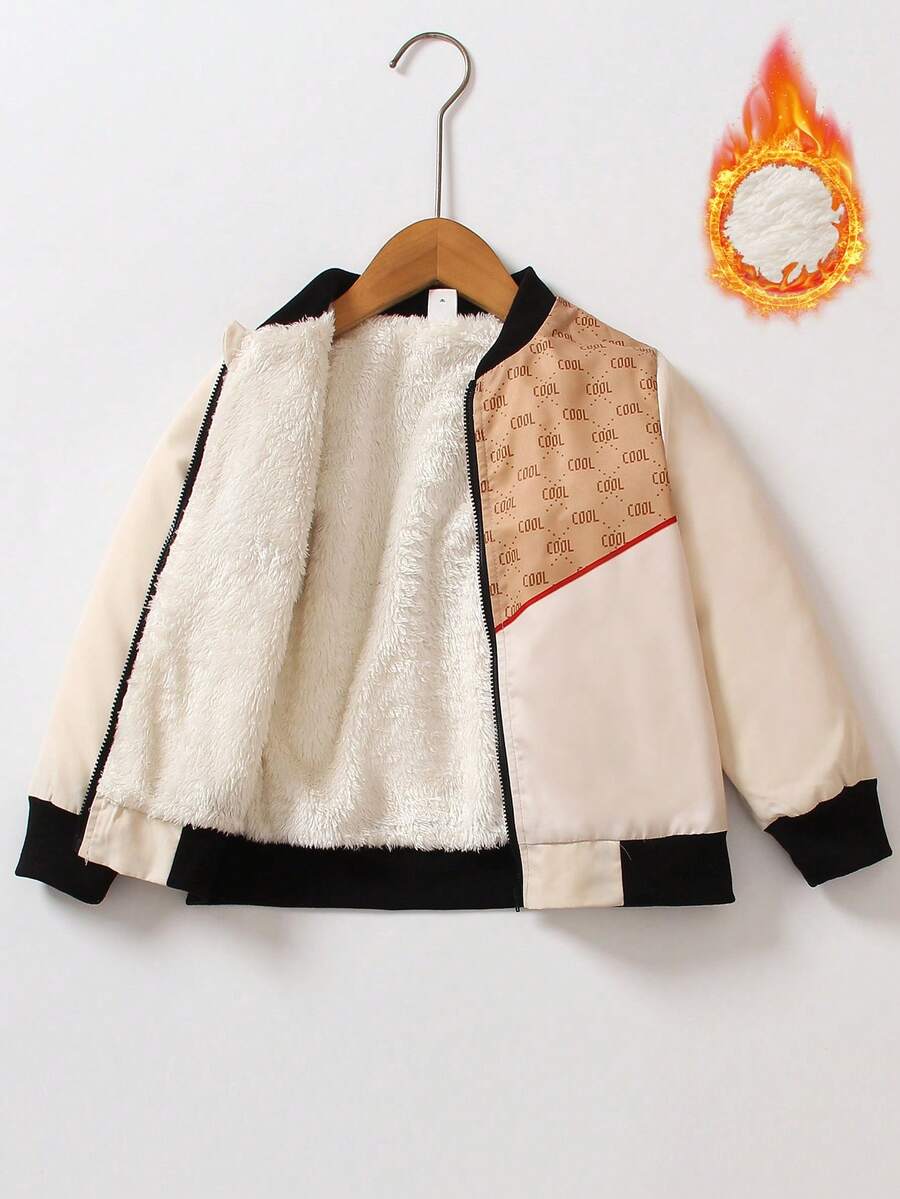 Young Boy 1pc Letter Print Thermal Lined Zip Up Bomber Jacket