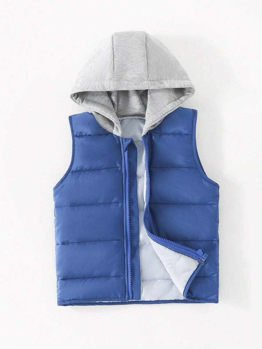 Young Boy 1pc Zipper Hooded Vest Puffer Coat