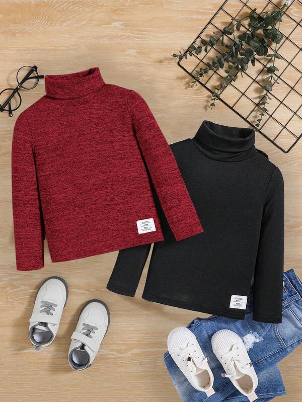 SHEIN Kids EVRYDAY Young Boy 2pcs Letter Patched Detail Turtle Neck Tee
