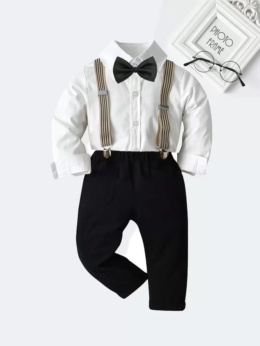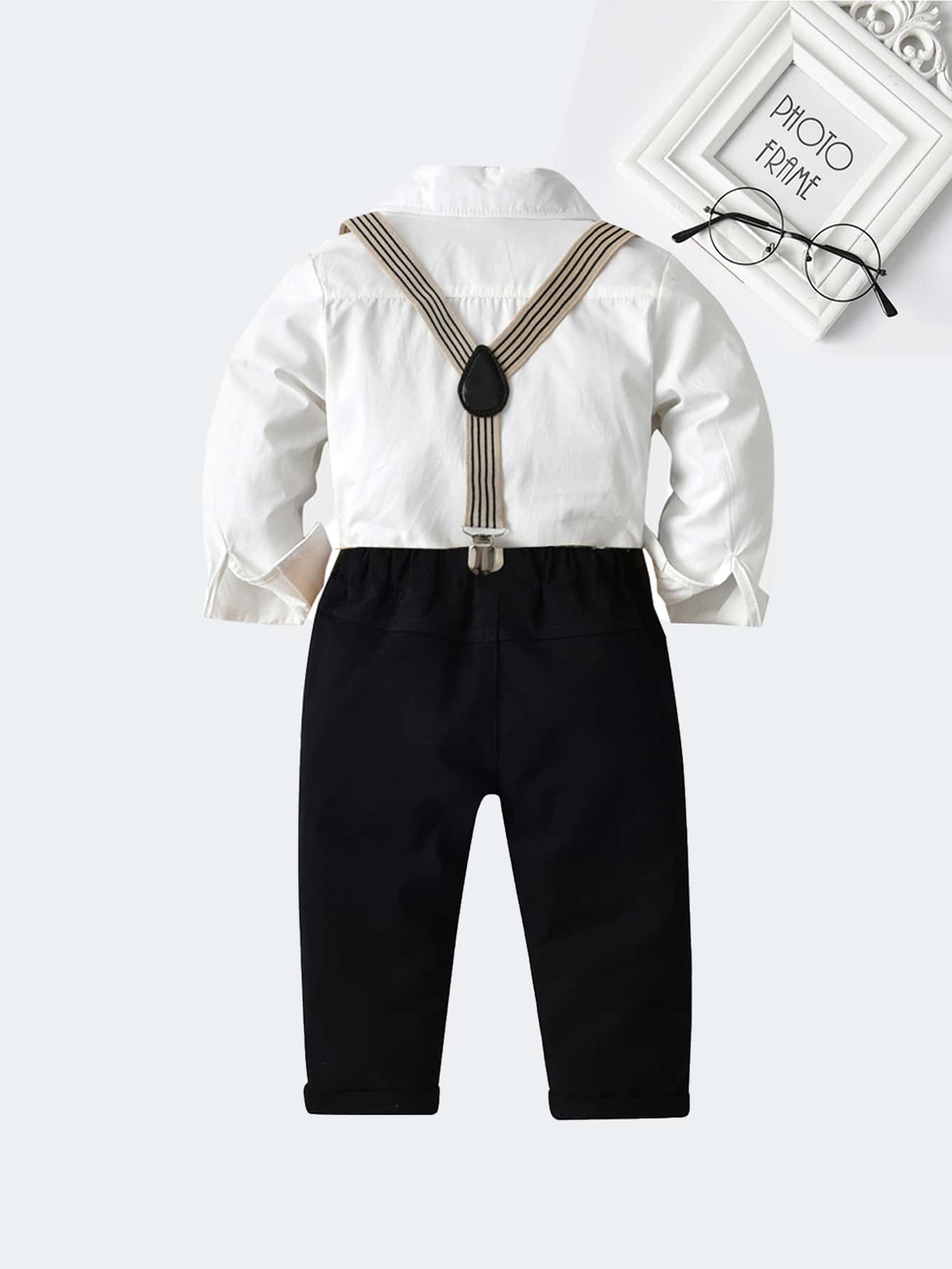 SHEIN Young Boy Bow Tie Button Up Shirt & Suspender Pants