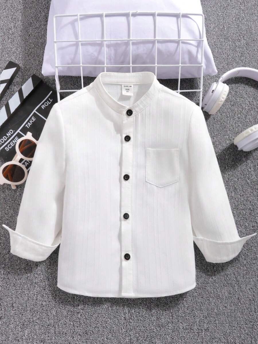 SHEIN Young Boy Casual Style College Comfortable Solid Color Buttoned Stand Collar Shirt With Flap Pockets, Suitable For Autumn And Winter