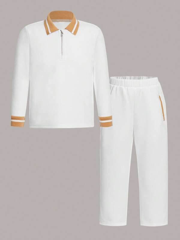 SHEIN Kids Academe Young Boy Contrast Trim Polo Shirt & Pants