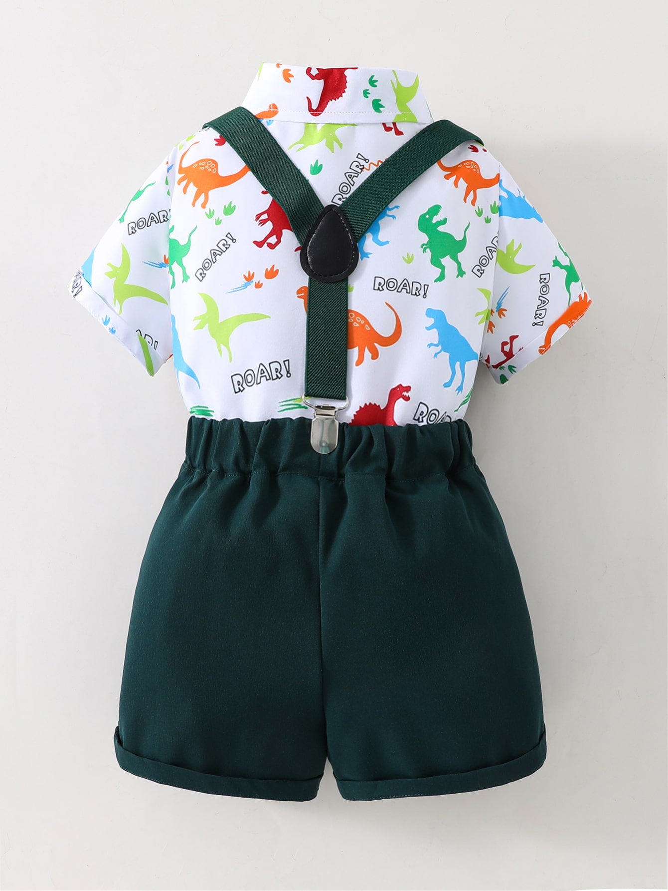 SHEIN Young Boy Dinosaur Cute And Simple Fashionable Turn-down Collar Regular Sleeve 2 Pcs Set For Summer