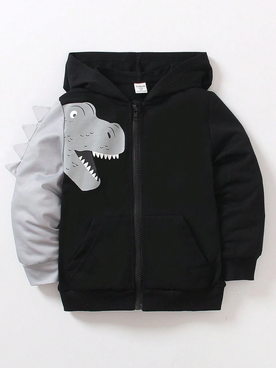 SHEIN Young Boy Dinosaur Print 3D Patched Hoodie