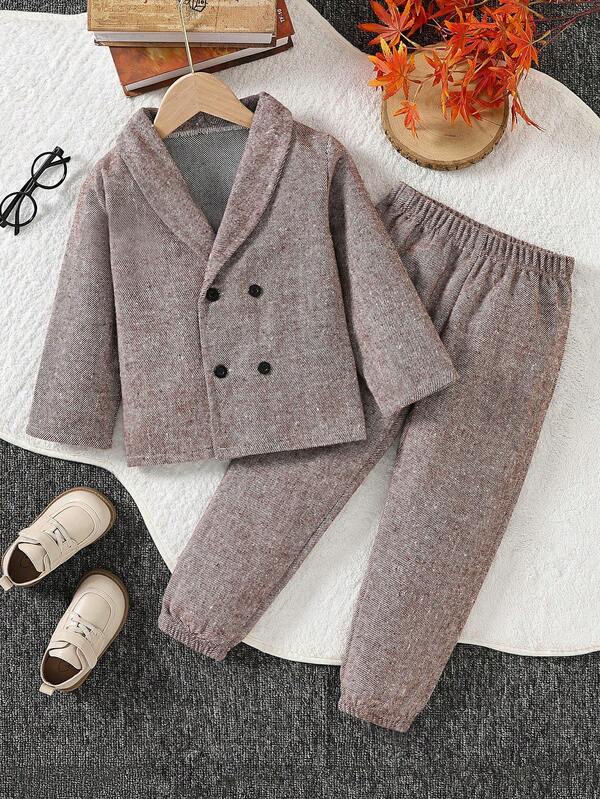 SHEIN Kids FANZEY Young Boy Double Breasted Shawl Collar Blazer & Pants