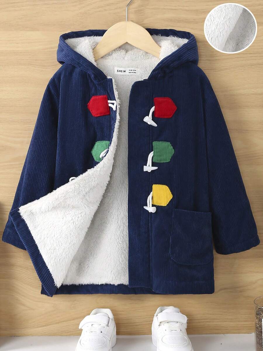 SHEIN Young Boy Dual Pocket Teddy Lined Hooded Coat