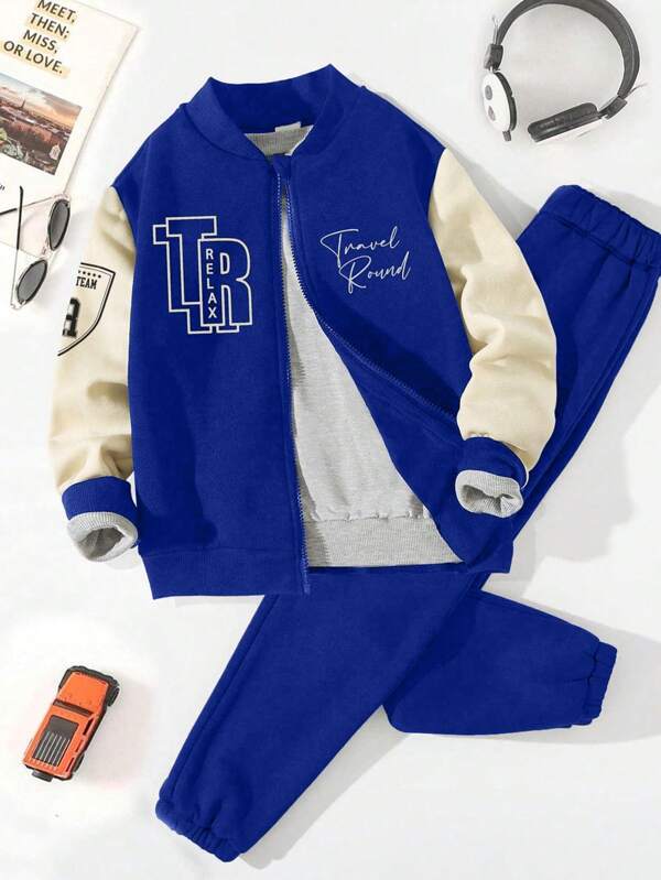 SHEIN Kids EVRYDAY Young Boy Letter Graphic Bomber Jacket & Sweatpants